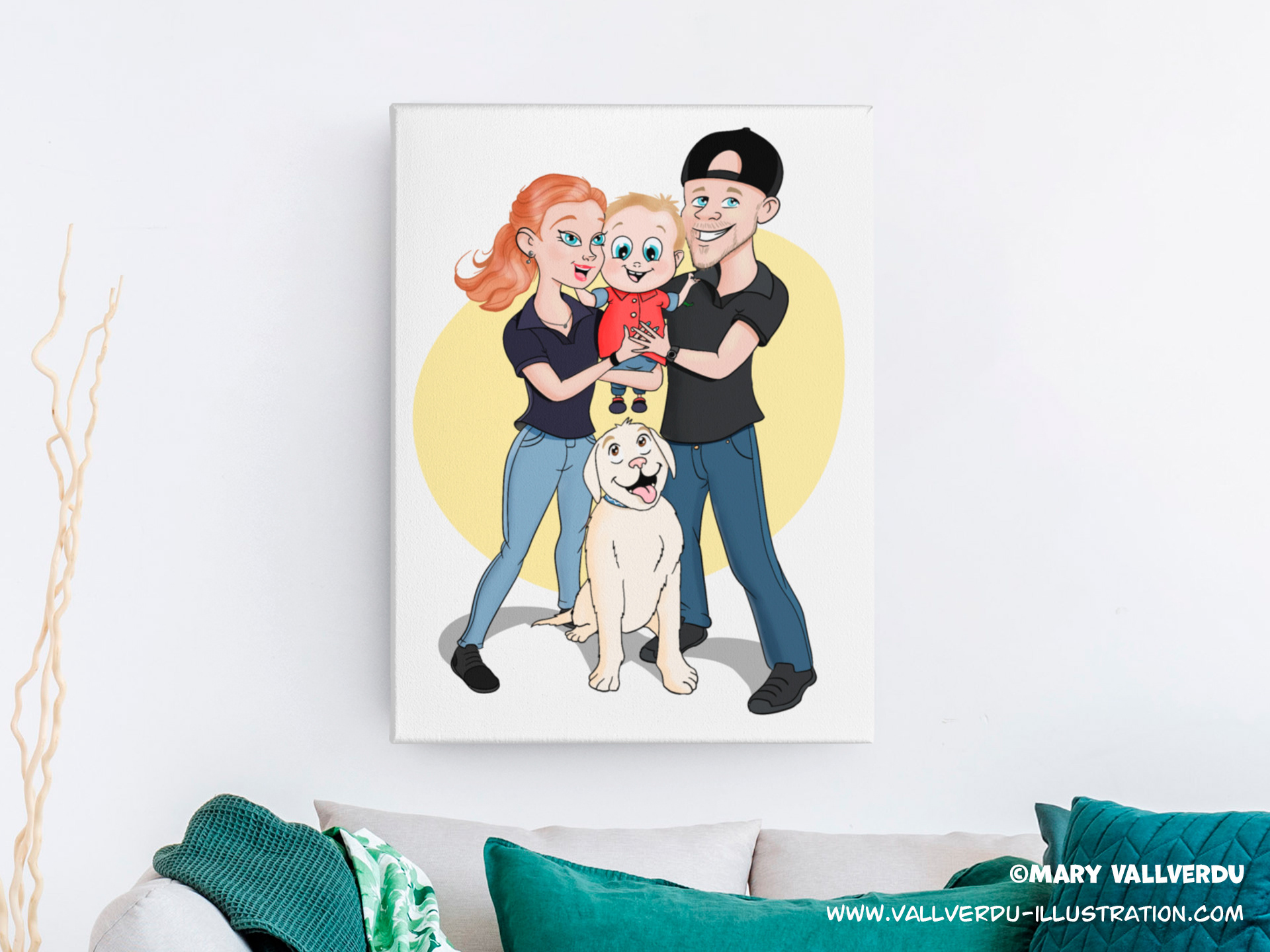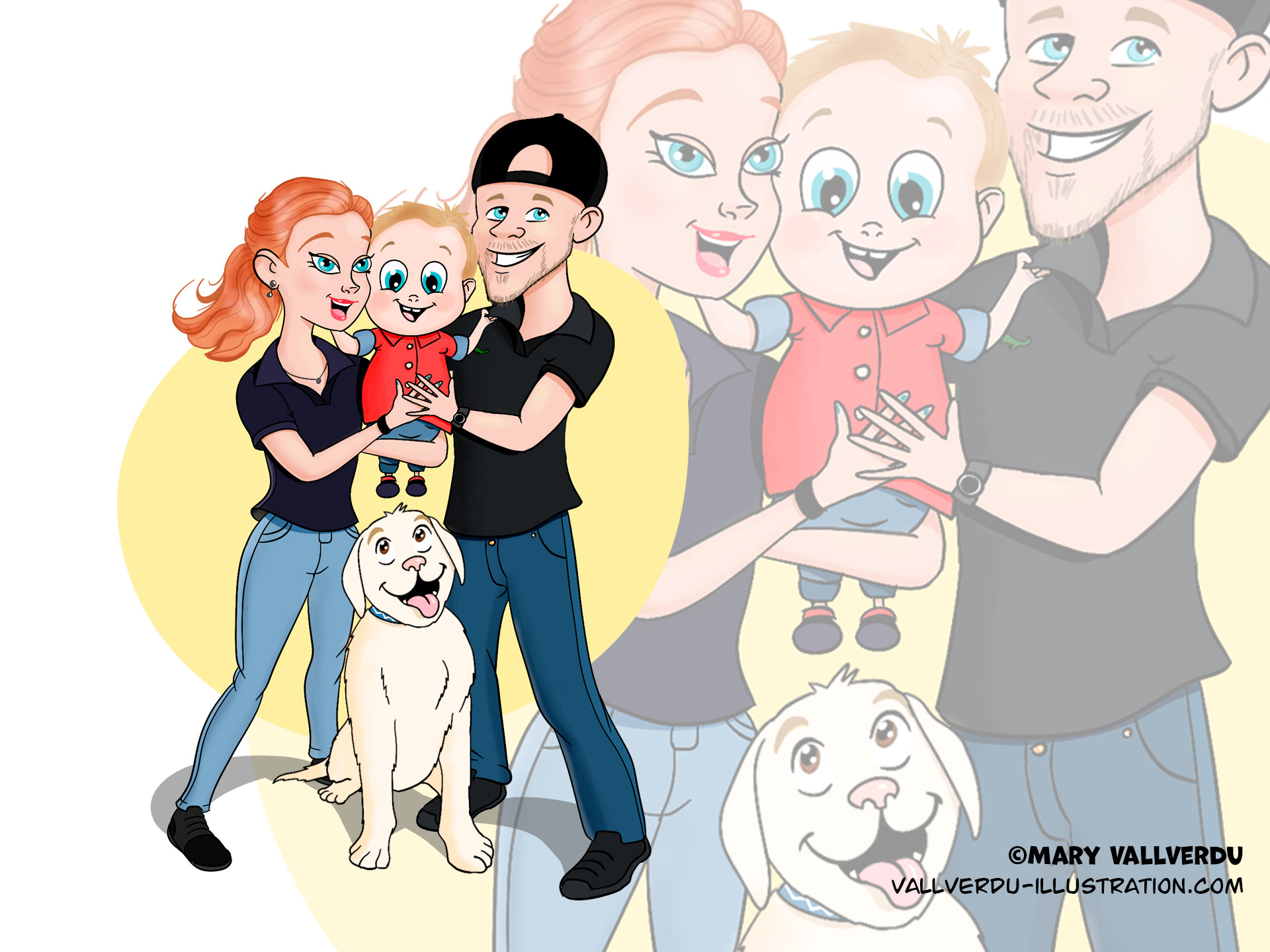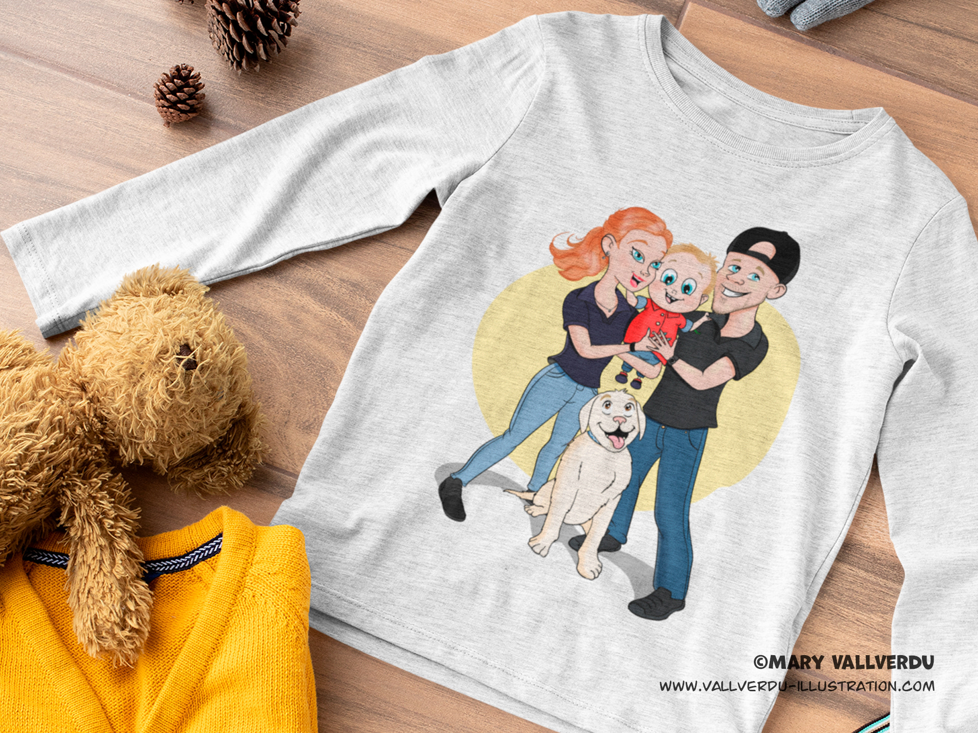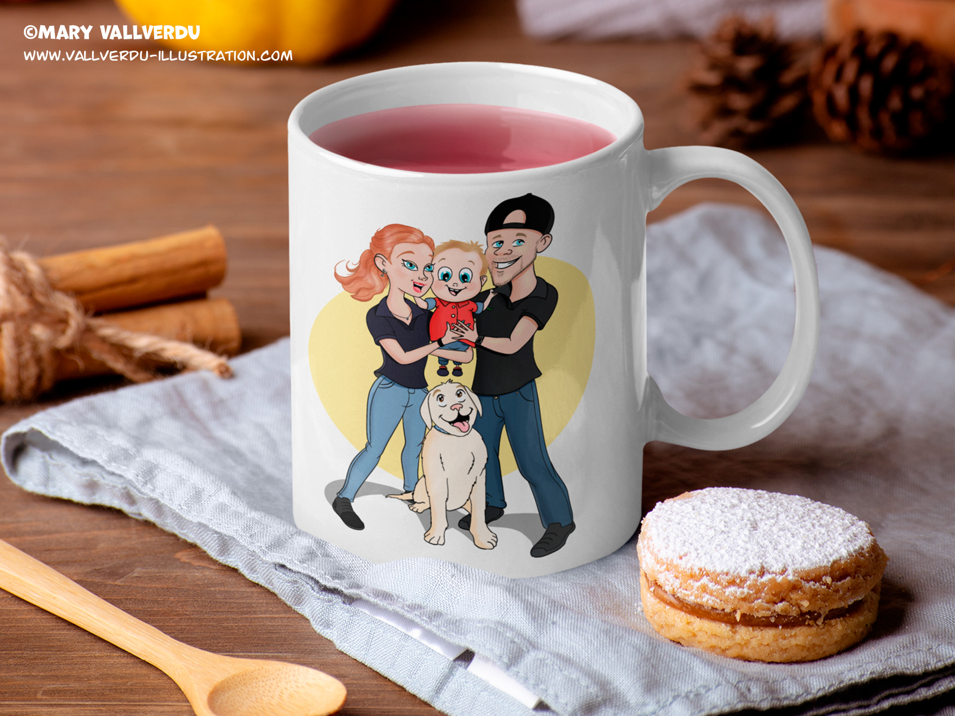 Cartoon style illustration made by commission to be applied on mugs and t-shirts. Based on a photograph.